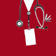 Dama de enfermeira criativa e formando de enfermagem com esfregões de hospital vermelho e estetoscópio. Para personalizar o texto de edição para criar um ornamento personalizado para formando de enfermagem.
