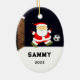 Presente de Enfeites de natal de futebol criativo com Papais noeis engraçados jogador de futebol chutando uma bola. Edite texto para adicionar o ano e o nome do seu jogador favorito, treinador de fã de esportes de futebol.
