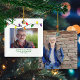 Memorial para sempre em nossos corações Moderno, mas rústico ornamento de Natal com uma adorável sequência de luzes coloridas em vermelho, verde, amarelo e roxo, juntamente com tipografia moderna. Adicione 2 das suas fotos favoritas para o ornamento perfeito! Entre em contato conosco em cedarandstring@gmail.com se precisar de ajuda com o design ou produtos correspondentes.