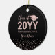 Este ornamento cerâmico de graduação moderna apresenta a tipografia de ouro-rosa "Classe 2022" e um gráfico boné de formatura com fundo de confete. Você pode personalizar o texto. Mais opções de cores e presentes de graduação personalizados estão disponíveis no meu compro BaraBomDesign.