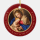 Adicione um toque elegante e significativo ao seu presente de Natal dando com estes Enfeites de natal religiosos com uma bela pintura da Madonna e da Criança pelo artista Giovanni Battista Salvi em uma paleta de cor vermelha e dourada com falso brilho. Este ornamento religioso também inclui a escritura Bíblia Luke 2:11 (E até você é nascer este dia na cidade do Dia um Salvador que é Cristo do Senhor" e espaço para uma mensagem de Natal pessoal e seu nome familiar. Este Enfeites de natal seria um presente maravilhoso para o seu padre ou pastor, mas também seria bom como presente para qualquer um dos seus amigos cristãos ou católicos. Projetado como parte da minha coleção de Madonna e Crianças. Para alterar fontes ou cores ou reposicionar caixas de texto neste modelo, percorra as caixas de modelo de texto e clique em "Editar usando a ferramenta design". Se precisar de ajuda adicional, aproveite o serviço gratuito do Zazzle em https://www.zazzle.com/live ou entre em contato comigo através do sistema de mensagens do Zazzle. Além disso, se precisar de algo que não veja nesta coleção, por favor, avise-me. Eu ficaria feliz em design para você! Por favor, observe que eu crio os designs, mas toda a impressão e envio é feita pela Zazzle em suas instalações de produção, de modo que, se houver algum problema com seu pedido, entre em contato com o suporte ao cliente deles em 1-888-892-9953 ou https://www.zazzle.com/about/ask.