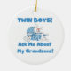 As avós novas orgulhosas de bebés gêmeos amarão este design azul bonito que caracteriza dois coelhos em um berço azul e o texto azul que lê "pergunta-me sobre meus netos!"