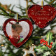 Este ORNAMENTO DE FOTO DE NATAL personalizado/pintado à mão tem a forma de um coração e carregar uma mensagem para O PRIMEIRO ANO COMO AVÓS COM uma foto do seu neto no verso. Todo texto permite personalização. Este adorável ornamento vermelho brilhante, com belas aparas de Natal, parecerá excelente na árvore de Natal de ambos os lados.