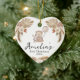 O primeiro ornamento de presente de Natal deste lindo bebê apresenta bonito escrita e um moderno design boho. Um doce urso de aquarela com balão e coelho sentado em cima do ornamento em forma de coração. Folhas e flores bordam a design bonito. A escrita personalizada de nomes de bebês e o seu ano de nascimento personalizado são facilmente personalizados na frente do novo ornamento de feriados de bebês. A parte de trás é uma foto de cheio do seu bebê recém-nascido. Esta elegante manutenção faz um presente pensativo para uma nova mãe ou pai ou para os pais que esperam, e também pode ser um presente de anúncio dos pais para amigos e familiares para compartilhar o nascimento do seu filho.