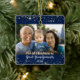 Personalize esta elegante ornamentação de Natal de dois lados para os avós excelentes que apresentam estrelas cintilantes de ouro falso sobre fundo azul escuro, com a sua própria fotografia com o seu neto com o texto "Nossos 1ruas de Natal como Avós" na frente com o ano. A parte traseira da foto mostra outra foto e o nome do seu primeiro excelente neto e do ano. Comece uma nova tradição anual para criar o ornamento pessoal da sua família a cada Natal. Um presente maravilhoso para dar a avós excelentes, avós, pais, ou para guardar por si mesmo.