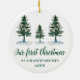 Script de Caligrafia Elegante Moderno, Árvores de Pinheiros de Aquarela, Nosso Primeiro Natal como Ornamento de Avós