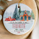 Primeiro Natal bonito no nosso novo ornamento cerâmico de inverno. Celebre seu primeiro Natal em sua nova casa linda com um adorável ornamento de feriado com uma pequena casa fofinha cercada de árvores. Personalize-o alterando o ano e o nome da sua família.