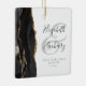 Este adorno elegante e moderno apresenta uma aquarela preta, agate design, aparada com falso brilho dourado. Personalize facilmente o texto das cinzas de carvão em um fundo branco, com os nomes da noiva e do noivo na caligrafia caprichosa por meio de uma grande e grande mala de cinza pálida. As palavras "Primeiro Natal Casado" aparecem em letra de serifa juntamente com o ano personalizável.
