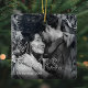 Elegante ornamento de casal de natal de dois lados, com duas fotos de cada lado, o ditado "mr. & mrs." em uma fonte moderna e branca, seu nome de família e o ano.