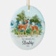 Uma bela maneira de comemorar o seu primeiro Natal como Pai. Este adorável ornamento de aquarela apresenta um veado e provido contra uma paisagem montanhosa. Personalize facilmente esta design com o texto de sua escolha, e torne-a especial ao adicionar uma foto da família ao fundo.