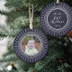 Celebre o seu primeiro Natal com este adorável ornamento em estilo moderno e mudo. O design de dois lados mostra a foto do seu bebê cercada por uma borda azul e branca de medalhão marinho, com "[name's] First Christmas" e o ano no sentido inverso.