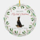 Este adorno doce de cão apresenta a tipografia "meu primeiro Natal em minha casa para sempre" com bonito escrita vermelha. O nome do seu animal de estimação é proeminente no topo da design, e está rodeado por uma coroa festiva botânica e de bagas pintadas. O ornamento inclui um bonito cão ilustrado doberman no centro. Um belo presente para qualquer pai de pele!