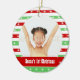 Umas listras vermelhas, brancas e verdes festivas e do divertimento de Natal da árvore da decoração da caracterização com estrelas. PERSONALIZE-A - mude o fraseio para fazê-lo original e para pendurá-lo em sua árvore como uma memória especial de uma amada, o membro da família ou o animal de estimação.