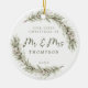 Ornamento De Cerâmica Primeiro Natal em Newlyweds Sage Greenery
