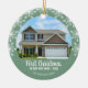Um enfeite perfeito para marcar o primeiro Natal em uma nova casa. O design oferece um quadro fotográfico para uma imagem da sua nova casa e texto personalizado para personalizar com seu nome e ano. O fundo é verde-claro e acentua-se com flocos de neve brancos.