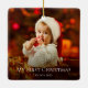 Primeiro ornamento cerâmico de Papai Noel de Natal, com design de fotos de bebês e tipografia personalizável. Faz uma adição festiva à árvore de férias da sua nova família.