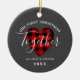 Primeiro Natal Juntos O Ornamento da Cerâmica Personalizada pelo Coração Russo é uma ideia de presente de guardião do excelente para um casal. Ambos os lados do ornamento são projetados com fundo de cinza escuro e coração de xadrez de búfalo vermelho no centro. O texto é "nosso primeiro Natal juntos" em letra de caligrafia de script manuscrito, seguida de nomes de casais e ano personalizado.