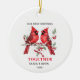 Enfeites de natal engraçado e fofo para todos os casais felizes. Ele apresenta um casal de cardeais vermelhos bonitos. Fácil de personalizar com seu nome e ano