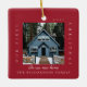 Uma fotografia simples e moderna mantém uma nova decoração de fotografias caseiras para comemorar o seu primeiro Natal na nossa nova casa. O design apresenta um simples design mínimo com um design de fotografia quadrada para mostrar a sua nova fotografia de casa especial. "Nosso primeiro Natal", ano e nome de família é mostrado em uma simples design moderna ao redor da foto. Dois ornamentos fotográficos com uma foto de um lado e uma segunda foto do outro lado do ornamento.