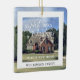 Um enfeite especial para comemorar sua nova casa para as férias. Adicione sua nova foto de casa à frente e ao verso do ornamento. Personalizar com assinatura de família e ano. O "Primeiro Natal" é escrito em uma fonte com estilo de escrita de caligrafia sobreposta à fotografia de casa. Este ornamento faz um presente de excelente para sua família ou amigos se mudando para uma nova casa.