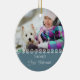Comemore seu Natal dos cães de filhote de cachorro primeiro com este ornamento personalizado da foto. O modelo setup para que você adicione sua foto favorita, seu nome de animal de estimação na parte dianteira e seu texto feito sob encomenda na parte traseira. O design está em um fundo azul temperamental na moda (mas sinta livre bater o botão da personalização se você deseja o mudar). Uma lembrança bonita a estalar em sua árvore de Natal por muitos próximos anos. Consulte por favor nossa loja para estilos e cores alternativos.