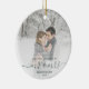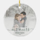 Comemore o primeiro Natal do seu casamento com este belo ornamento moderno do keepsasasaame. O texto verde agulha do pinheiro escuro diz: "Nosso primeiro Natal como Sr & Sra.", com as palavras "Sr. & Sra." em um roteiro elegante, com flores antes e depois. Substitua a imagem de exemplo por sua foto favorita e adicione seu sobrenome e o ano. Um filtro de gradiente branco ajuda a fazer o pop de texto.
