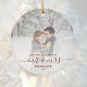 Comemore o primeiro Natal do seu casamento com este belo ornamento moderno do keepsasasaame. O texto vermelho escuro diz "Nosso primeiro Natal como Sr. & Sra.", com as palavras "Sr. & Sra." em um elegante roteiro de manuscrito com florescimento antes e depois. Substitua a imagem de exemplo por sua foto favorita e adicione seu sobrenome e o ano. Um filtro de gradiente branco ajuda a fazer o pop de texto.