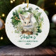Conmemorar um momento especial con este encantador conejito adorno. Con un espléndido conejito de vegetación exuberante, este adorno capta la magia de la primera Navidad de un bebé o de las primeras vacaciones de una familia . Personalízalo con un nombre y el año para crear un conservador significativo que traerá alegría año tras año. Perfeto para añadir un dulce e inspirado em la naturaleza a tu árbol de Navidad o como un regalo para nuevos padres ou séries queridos. Celebra la temporada con este delicioso adorno de cerámica.