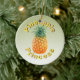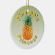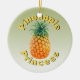 Enfeite cerâmico redondo com uma imagem no topo de um ananás ouro rodeado pelo texto "Pineapple Princess" a verde gradado. Verde gradado para trás. Veja toda a coleção de Encaminhamentos de Naufrágio nos TOUCHES ESPECIAIS | Seção Favoritos para festas.