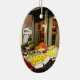Ornamento cerâmico oval com imagem de uma pintura aquosa de um mercado de produtos quentes em Veneza, Itália. Ouro escovado de volta. Veja a coleção inteira do Ornament italiano na seção HOME.