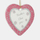 Que maneira maravilhosa e romântica de propor casamento à sua querida! Este ornamento bonito apresenta um coração branco enquadrado em imagens de gema de diamante falsa em um bonito fundo cor-de-rosa rosa e prateado floral damask. Dentro o coração branco é o texto que você faz na cinza prateada correspondente, além de imagens em flocos de neve brilhantes. O texto é totalmente personalizável, então você pode fazê-lo dizer o que quiser. Há um campo de texto de segundo na parte traseira, que tem a mesma borda falsa de diamante e a mesma imagem dentro. Este é um presente especial que será precioso para sempre. *Observe que a imagem está impressa e o ornamento não contém metal, brilho ou gemas.*