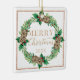 "Proposta de Natal Rua Vermelha Holly Folly Greenery Cerâmica Ornament." Que maneira especial de capturar o momento de mudança de vida onde dois decidem se tornar um em casamento. Proponha ao seu amado com esta elegante herança que mantém o ornamento da árvore de Natal. Trabalho de arte de aquarela de uma coroa de Natal com pínus cones, folhas sagradas e bagas com vegetação foliar da floresta recolhida que foi pintada manualmente por uma artista e designer internacionalmente licenciada, Audrey Jeanne Roberts, autora.