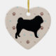 Para pais de cães, adoramos incluir nossos filhos peludos na comemoração de feriado ou evento familiar. Este ornamento com uma silhueta de um Pug é a maneira perfeita de comemorar o seu querido cão. Personalize as costas com o nome do seu cão, títulos ou o seu ditado favorito. Com um padrão de impressões de pata bronzeadas e pontos azuis em um fundo bege, este ornamento deve agradar a qualquer amante de cachorros ou dono de animais de estimação.