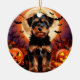 Ornamento De Cerâmica Puppy Adorável com Fundo Halloween