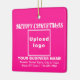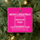Feliz Natal! Encaminhamento cerâmico com textos de saudação de Feliz Natal, nome de sua empresa ou empresa, logotipo, endereço e número de telefone. Designs são textos brancos sobre fundo cor-de-rosa e em forma quadrada. Ornamento para decorar a árvore de Natal em sua loja, compro ou escritório. Ornamento para receber visualmente seus clientes nesta temporada de feriados e anunciar sua empresa ou promover seu nome de marca. Personalize-o e use-o para criar reconhecimento de nome de marca. Verifique a aparência após carregar o logotipo e digitar textos. Se a aparência lhe agrada, você pode colocar seu pedido agora. Se você precisar redimensionar e mover o logotipo e os textos para o ajustado neste ornamento ou em outros estilos que você escolher, mude na ferramenta design. Você também pode fazer outras alterações de acordo com sua preferência na ferramenta design, como alterar a cor do ornamento, a cor da fonte e o estilo da fonte. Feliz Natal! Desejo mais vendas para você neste feriado.