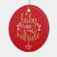 O ornamento cerâmico de Natal, com a frase "Bebê é frio lá fora", é definido num texto elegante em ouro e em branco sobre fundo vermelho. Você pode personalizar com seu nome de família. Ajudando a melhorar a decoração da temporada de férias. Um presente perfeito como decoração de Natal!