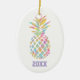 Rainbow Watercolor Pineapple Tropical Personalizada Cerâmica Ornament. Ornamento de abacaxi com aquarela tropical com ano personalizado.