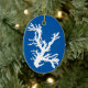 Ornamento De Cerâmica Ramificação de Coral, Branca no Azul Cobalto