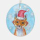 Enfeites de natal com uma raposa aquosa vestindo um chapéu de Papai Noel e um lugar para colocar uma mensagem pessoal no verso.