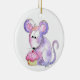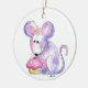 Ornamento De Cerâmica Rato branco bonito com Cupcake