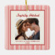 Para o casal que está passando seu primeiro Natal juntos como um casal casado que merece marcar este tempo especial com um adorável ornamento de árvore de Natal. Esse ornamento de árvore pode ser personalizado com a inclusão de uma foto especial de casal, e seu nome casado e ano na frente. O texto no verso pode ser conservado no estado em que se encontra ou editado para texto de comprimento equivalente. A design apresenta uma reviravolta moderna com suas listras de cana doces e arco vermelho bonito no verso. Compre com a bolsa opcional ou use seu próprio presente para o casal feliz, mas de qualquer forma, este novo ornamento de árvore traz um sorriso para os rostos das super fofinhas recém-casadas.