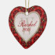 texto personalizável forma cardíaca ornamento cerâmico : Padrão vermelho e dourado com espaço central para seu próprio texto em um lado deste ornamento enforcado. Ideia de ornamento: faça seu próprio cabide de porta personalizado / nome do quarto: segure no cabo curto no meio da sua porta. Adequado também como presente personalizado para alguém especial: Dia de São Valentim, Aniversário ou apenas um lembrete especial de amor. Como minhas designs e Arte?