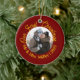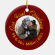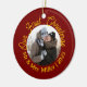 Nosso Primeiro Pedido de Foto de Natal de 2025 | Feriado Personalizado Vermelho e Dourado. Adicione charme festivo à sua árvore de Natal com este ornamento cerâmico personalizável. Apresentando texto quente de feriado em vermelho ou ouro e um espaço central de fotos, esta design é perfeita para recém-casados celebrando seu primeiro Natal como Sr. & Sra. Personalize com sua foto, seu nome de família, e o ano para criar uma manutenção ou um presente significativo.