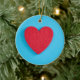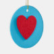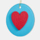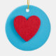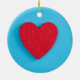 Este design apresenta uma imagem de um coração vermelho brilhante que foi originalmente feito de feltro; é colocado sobre um fundo azul claro.