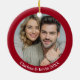 Felicidades de Natal e beijos de conterrâneo! É disso que o Natal é feito! Este adorável ornamento vermelho e branco é um bom aplauso! Adicione uma foto e seus nomes à parte de trás do ornamento. Excelente para recém-casados! Coloque na sua árvore para um charme extra. Projetado para você pelo Blackberry Boulevard.