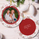 Ornamento De Cerâmica Red Snowflake Feliz Bright e Foto de Natal