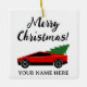 Ornamento De Cerâmica Red Tesla pickup truck with Christmas tree retro