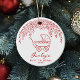 Personalized baby's first Christmas ornaments feature whimsical hand drawn doodle floral and baby stroller in festive red and white, cute and modern.