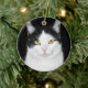 Ornamento De Cerâmica Retrato preto e branco do gato