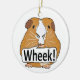 A design do Pig Wheek guineense mostra uma cobaia dizendo "whek!". É o que os porquinhos-da-índia felizes dizem aos seus detentores.